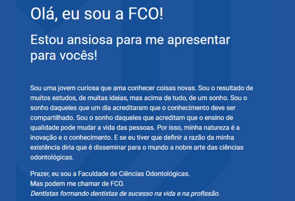 A FCO – Faculdade de Ciências Odontológicas é uma instituição privada de